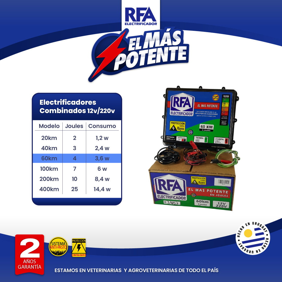 Potencia para campos medianos y libertad de instalación con 220V o batería 12V.